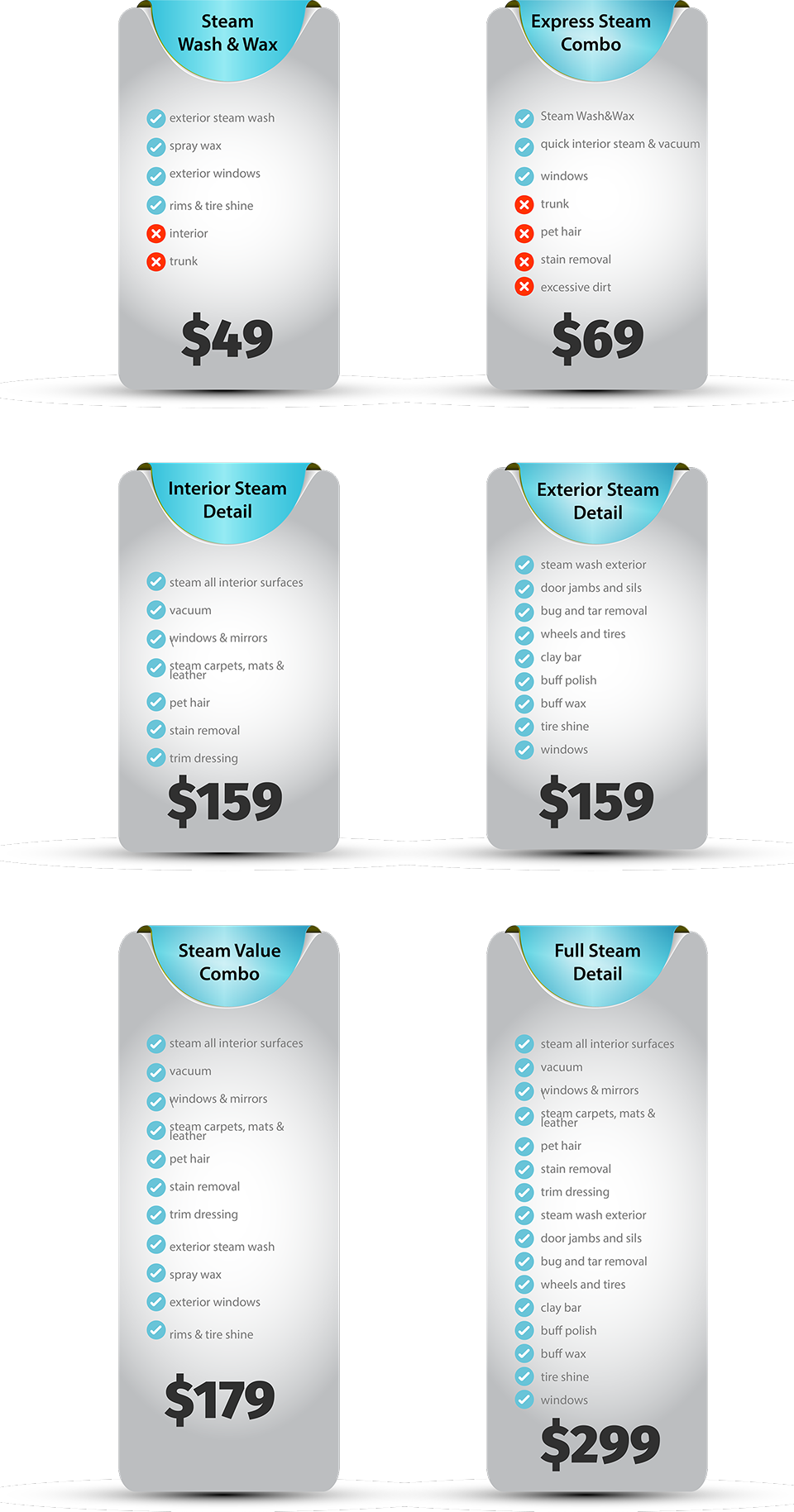 *$30 excessive dirt and pet hair removal fee added to interior detail, steam value combo and full detail when pet hair is present