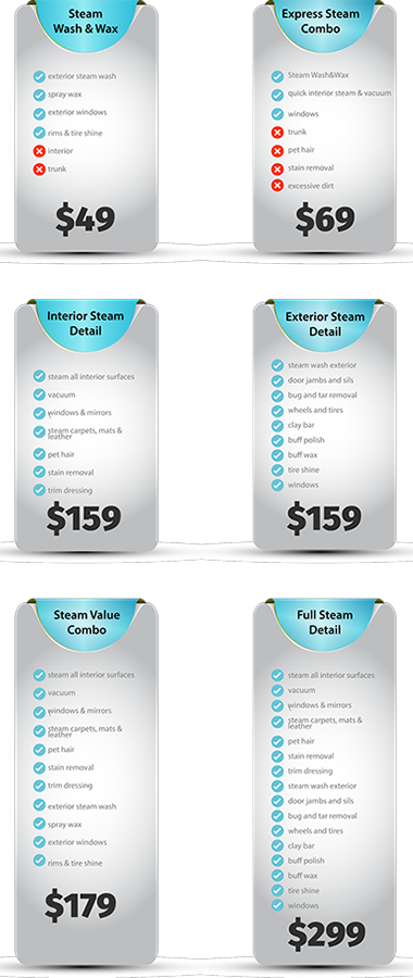 *$30 excessive dirt and pet hair removal fee added to interior detail, steam value combo and full detail when pet hair is present
